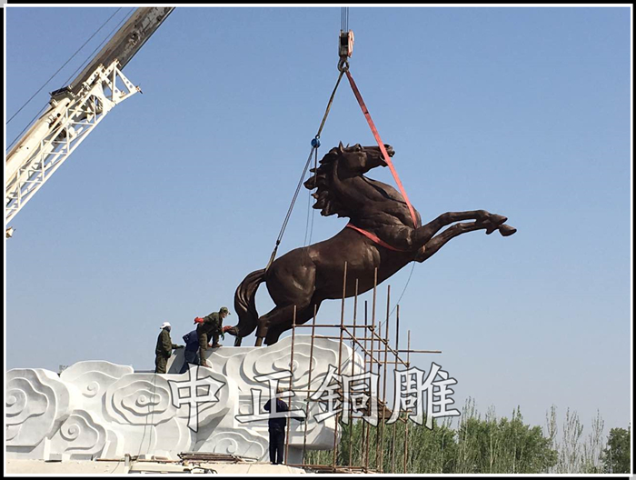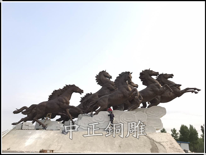 安裝于新疆維吾爾自治區阿瓦提縣的八駿馬鑄銅雕塑,八駿雕塑總高5.5米,威武雄壯,展其驥足,雄姿勃勃。此八駿馬為青銅制作,為當地再添靚麗景觀。